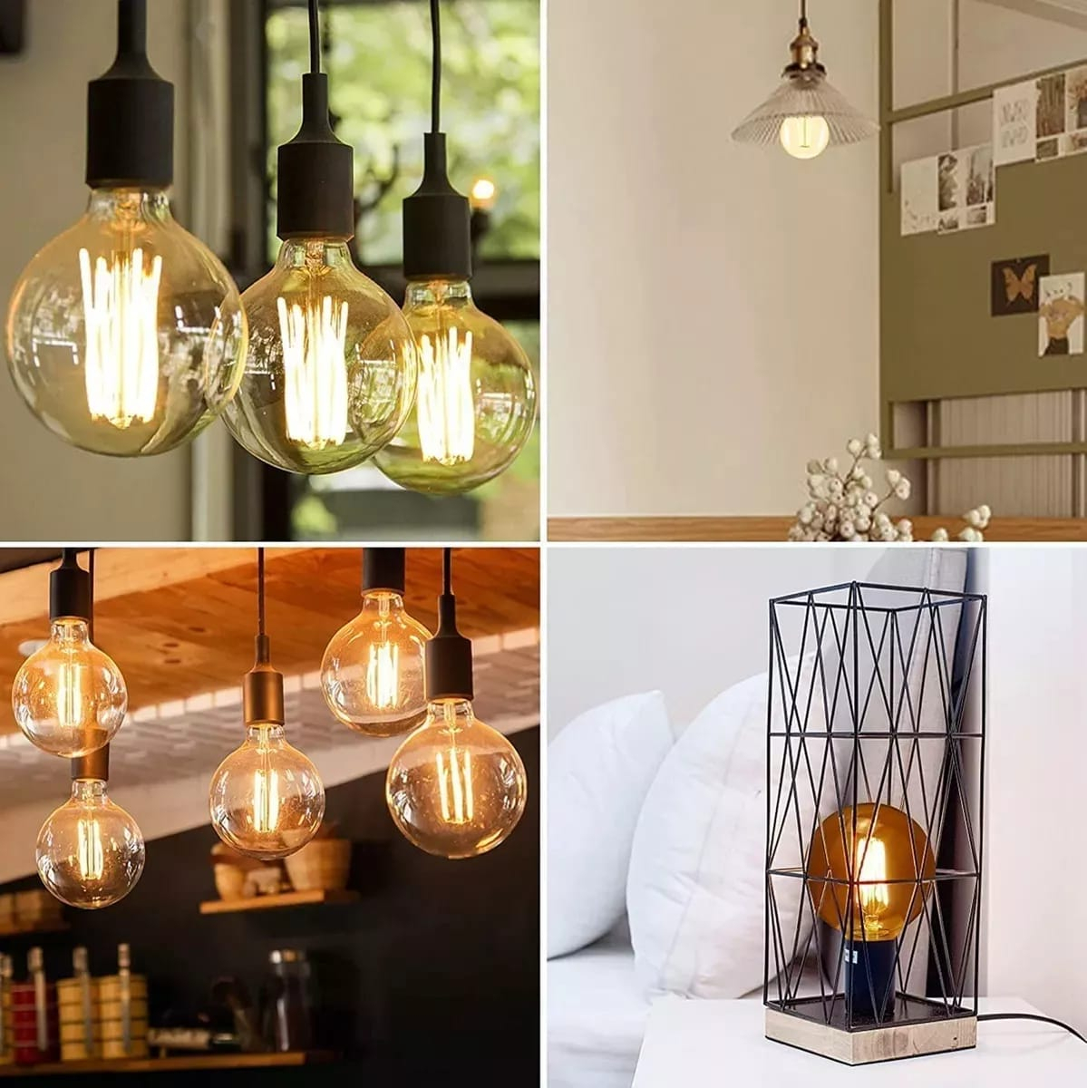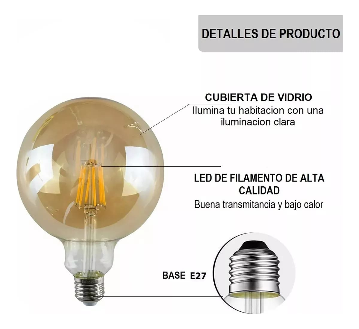 Diseño Clásico y Elegante: Vidrio claro con filamento en espiral que añade un toque retro.