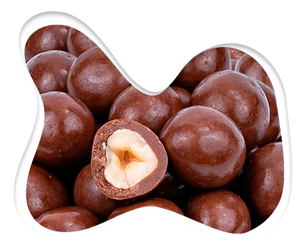 Avellana europea entera cubierta con Chocolate.