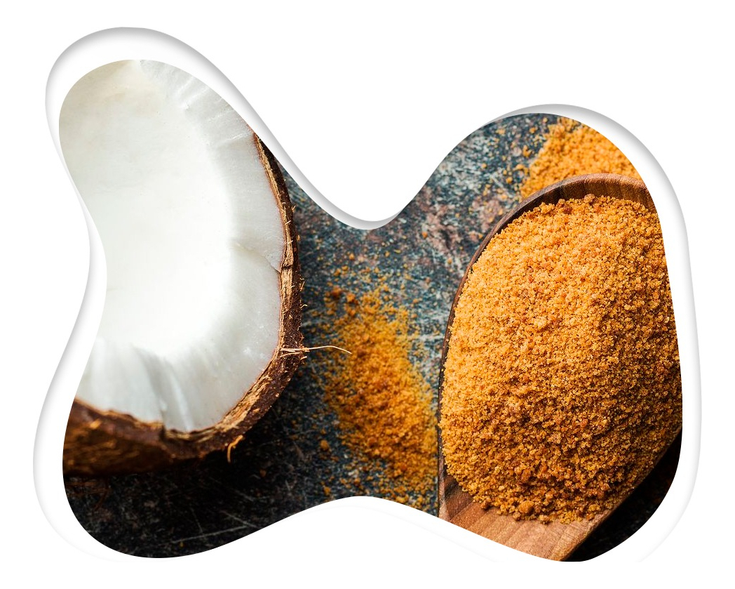 El azúcar de coco es un endulzante sano y natural, se extrae del néctar de las flores de la palmera cocotera que tras evaporar su humedad al fuego, va cambiando de color hasta convertirse en una sustancia densa y marrón que se cristaliza en azúcar de coco. Se compone de 80% agua, 15% azúcar y 5% minerales