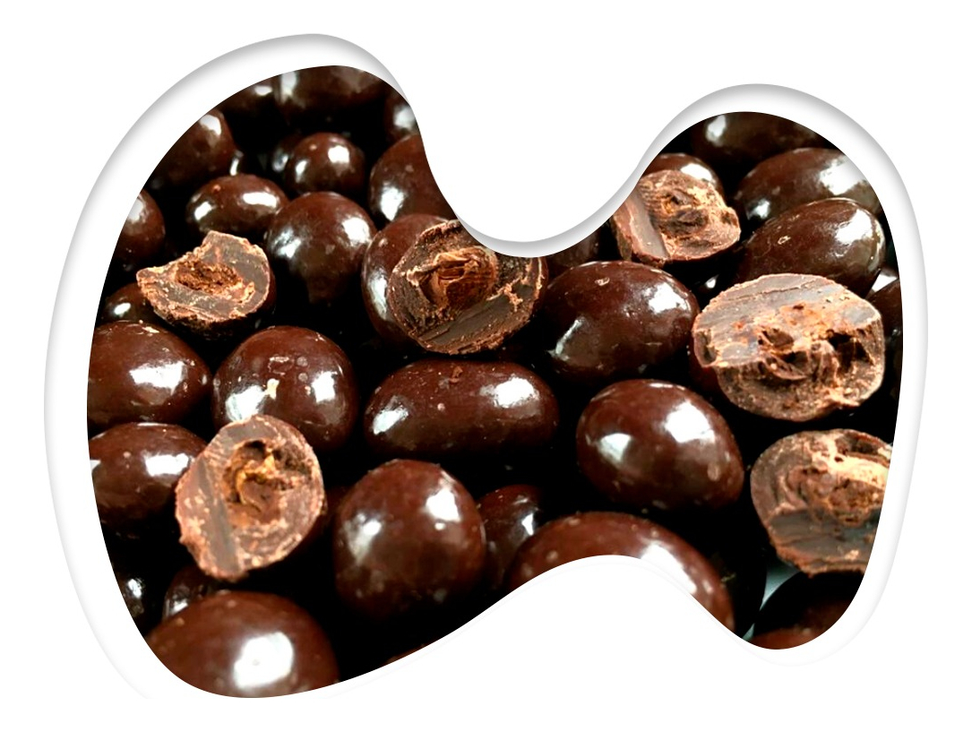 Grano de Cafe tostado cubierto con una rica capa de chocolate.(Es el mejor producto que tengo y es muy divino)