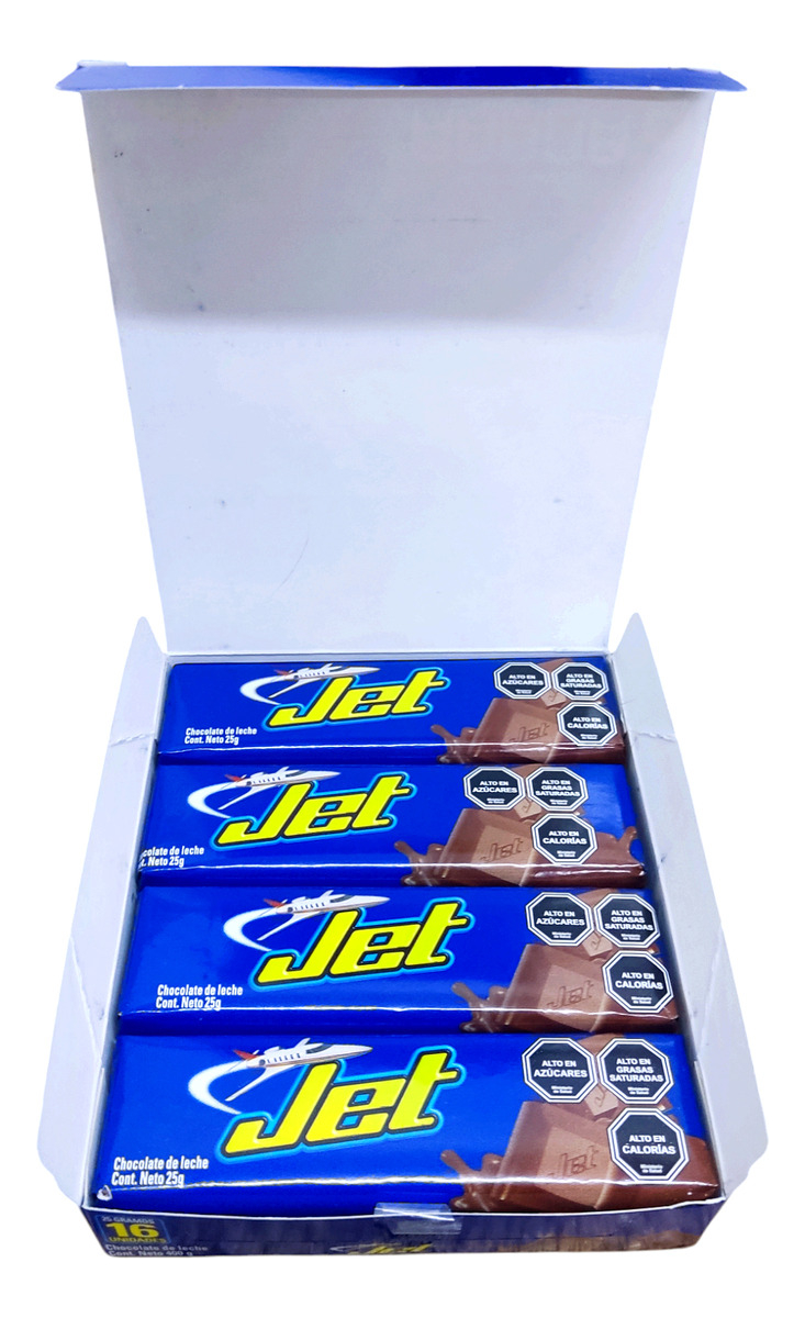 Imagina el momento perfecto: una tarde tranquila, una taza de café humeante y un delicioso chocolate. Eso es exactamente lo que te ofrece este set de 16 chocolates de leche Jet. Cada barra de 25 gramos no solo está diseñada para deleitar tu paladar, sino también para llenar tus momentos de dulzura y placer.