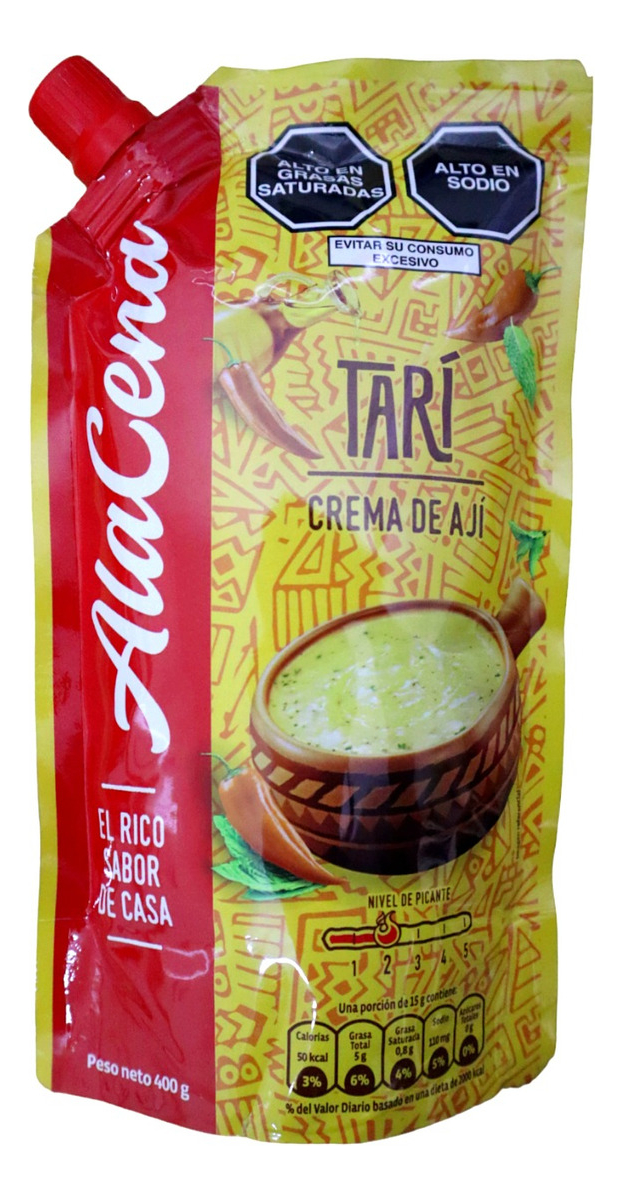Tari: Cierra los ojos y siente cómo los sabores intensos del Perú se despliegan en tu boca. La Tari es una crema de ají exquisita que te llevará en un viaje culinario sin igual. Úsala para darle vida a tus carnes, pescados o vegetales. ¡Es como un fuego de sabor que encenderá tus comidas!