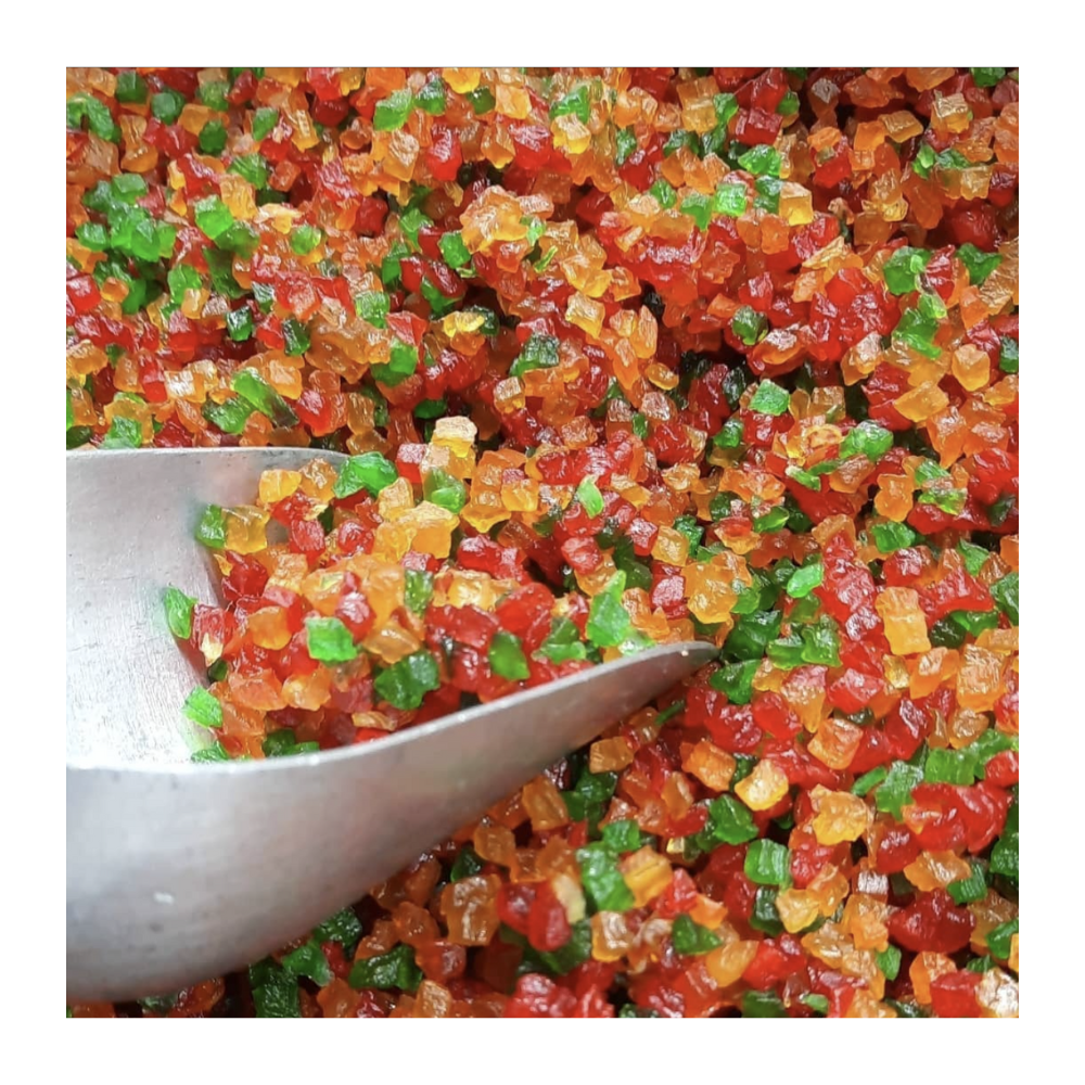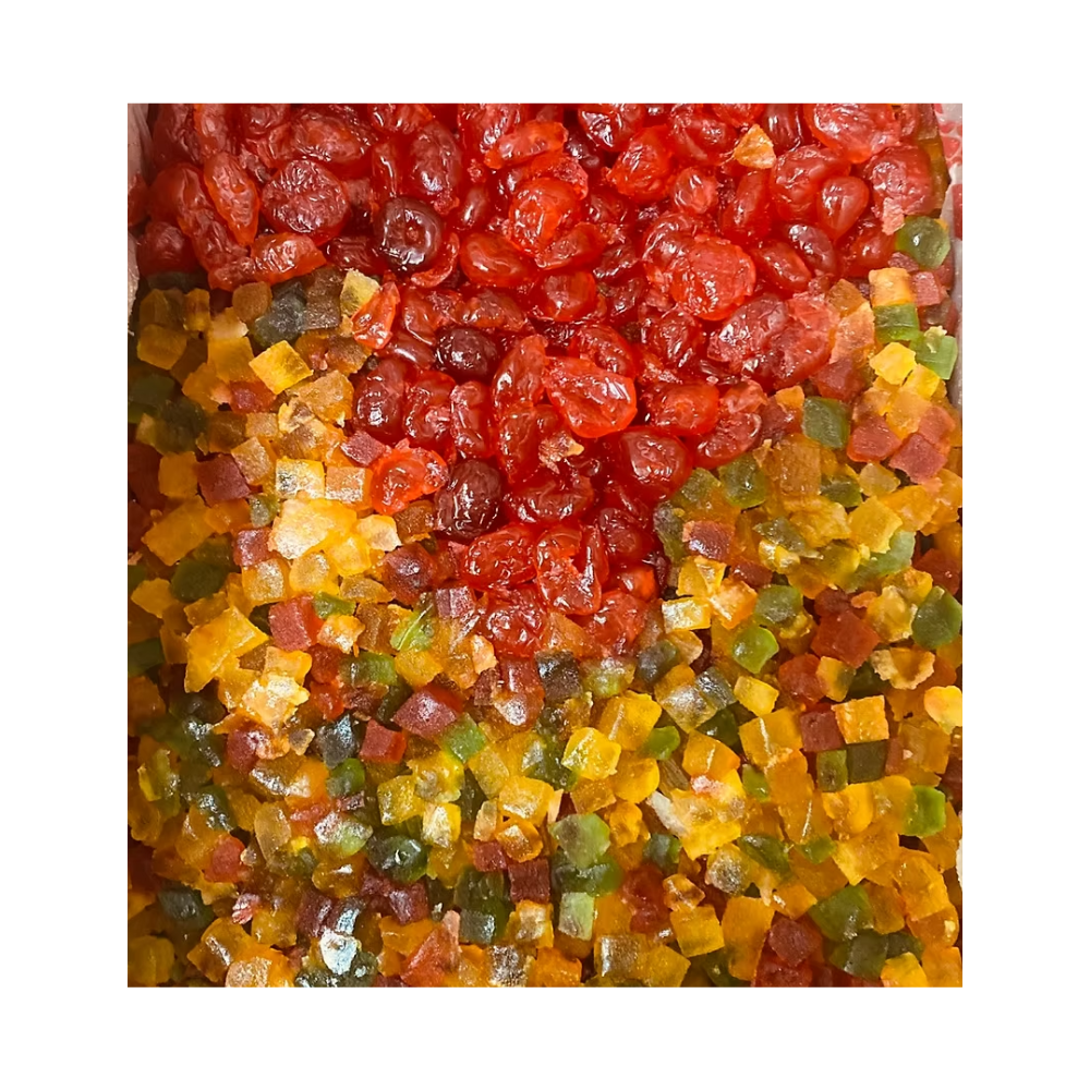 La Fruta Confitada para Pan de Pascua es el complemento perfecto para realzar tus recetas tradicionales. Presentada en una caja de 10 kg, esta mezcla de frutas confitada de alta calidad transformará tus preparaciones, aportando un sabor dulce y una textura inconfundible que los amantes de la repostería apreciarán.