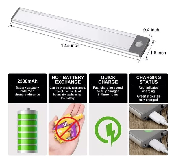 Reseña de la Barra de Luz LED Recargable e Inalámbrica con Sensor de Movimiento y Luz.