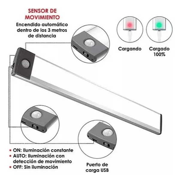 Modos de Operación Flexibles: La barra LED ofrece dos modos de operación: automático y manual. Esto te permite elegir entre un funcionamiento automático que se activa con el movimiento y la luz, o encenderla y apagarla manualmente según tus necesidades.