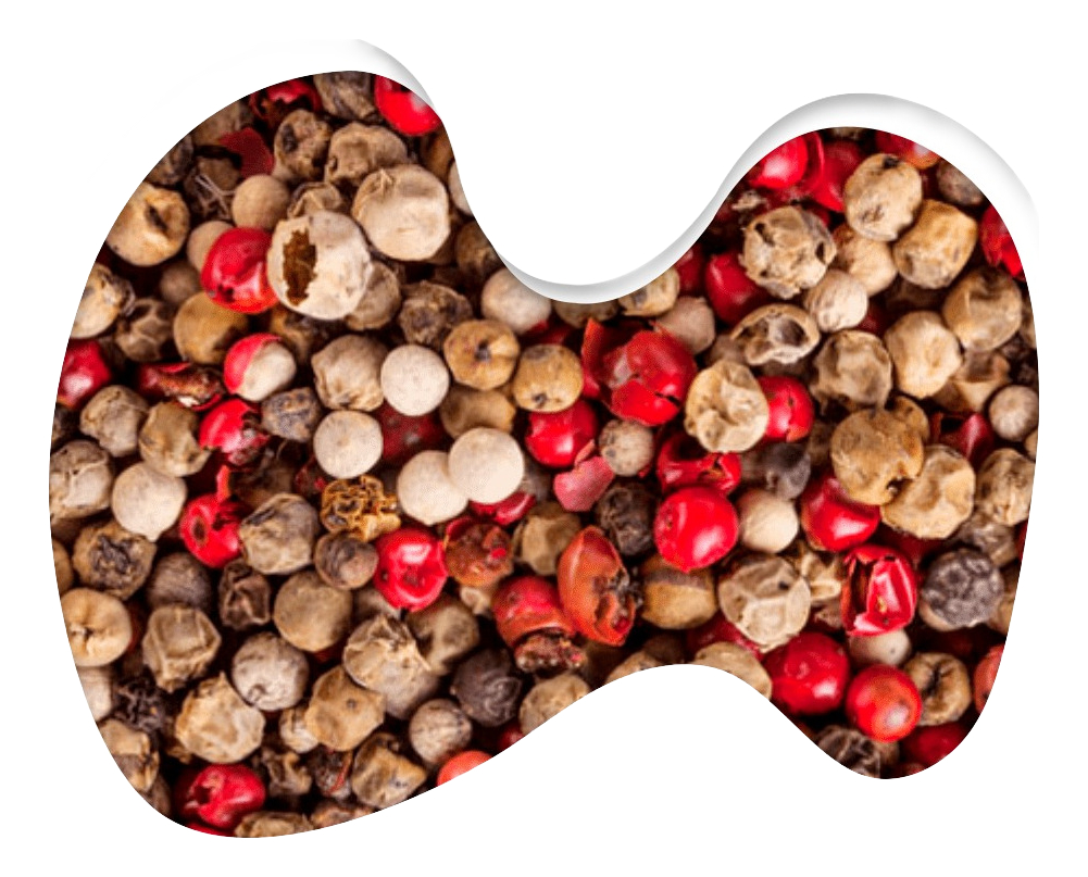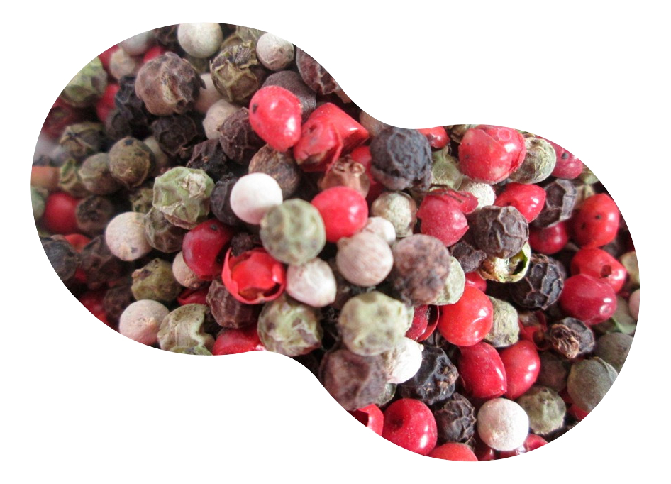 Es la mezcla mas famosa de las Pimientas, pimienta verde, pimienta negra, pimienta blanca y pimienta rosada.