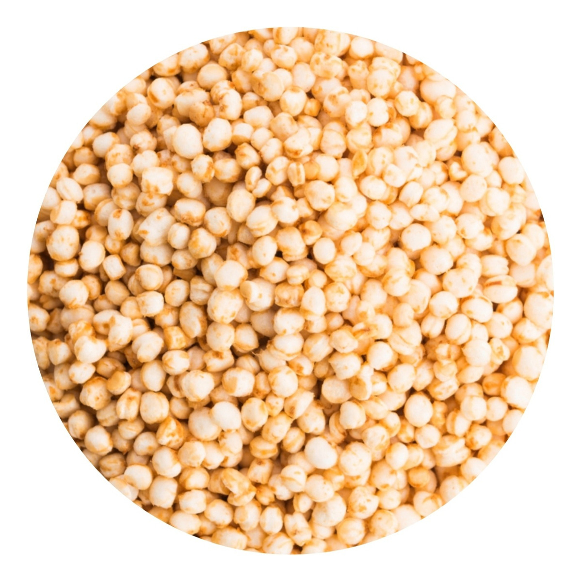 Textura Aérea: Cada grano de Quinoa Pop es como un pequeño almohadón de sabor. Su textura es sorprendentemente ligera y crujiente, lo que lo convierte en un placer para el paladar.
