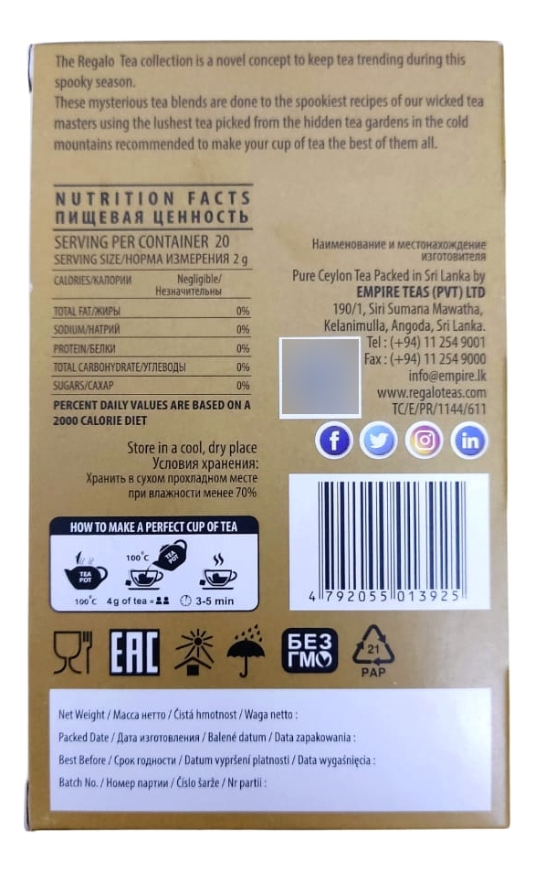 Explora y disfruta de cada una de estas variedades de té de la marca Regalo. Desde la frescura tropical hasta la sofisticación aromática y la autenticidad robusta, cada sorbo te llevará a un viaje sensorial inigualable.